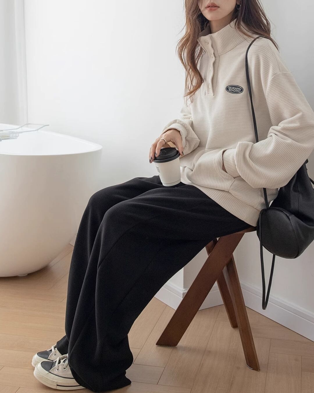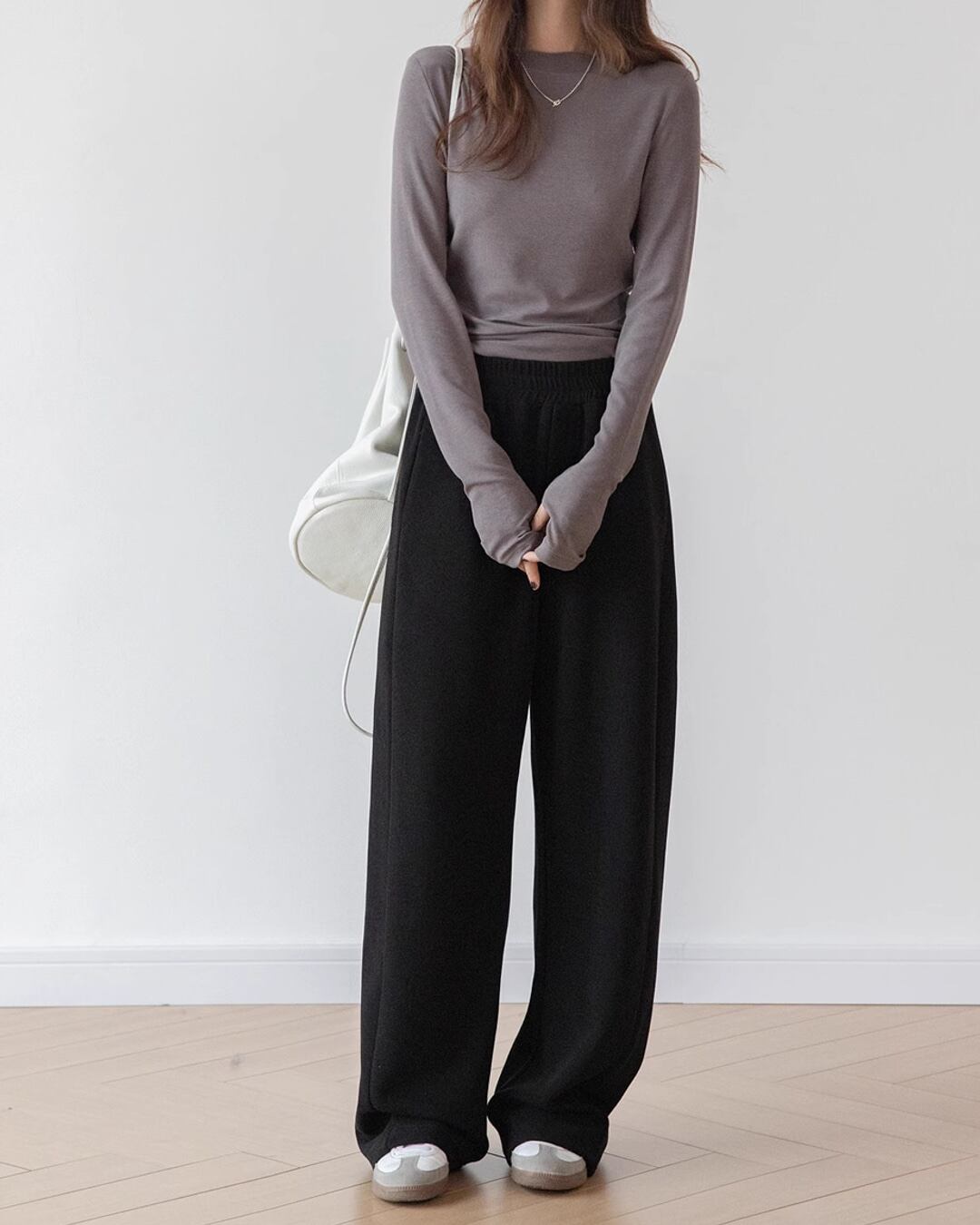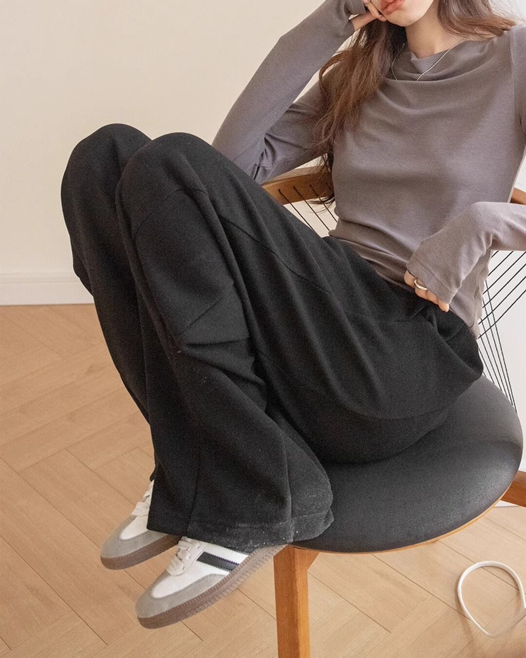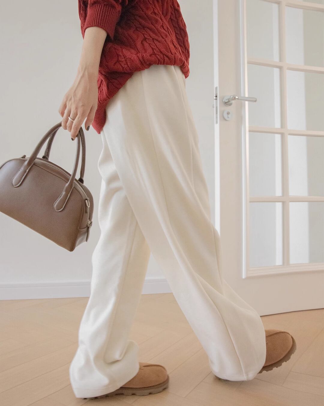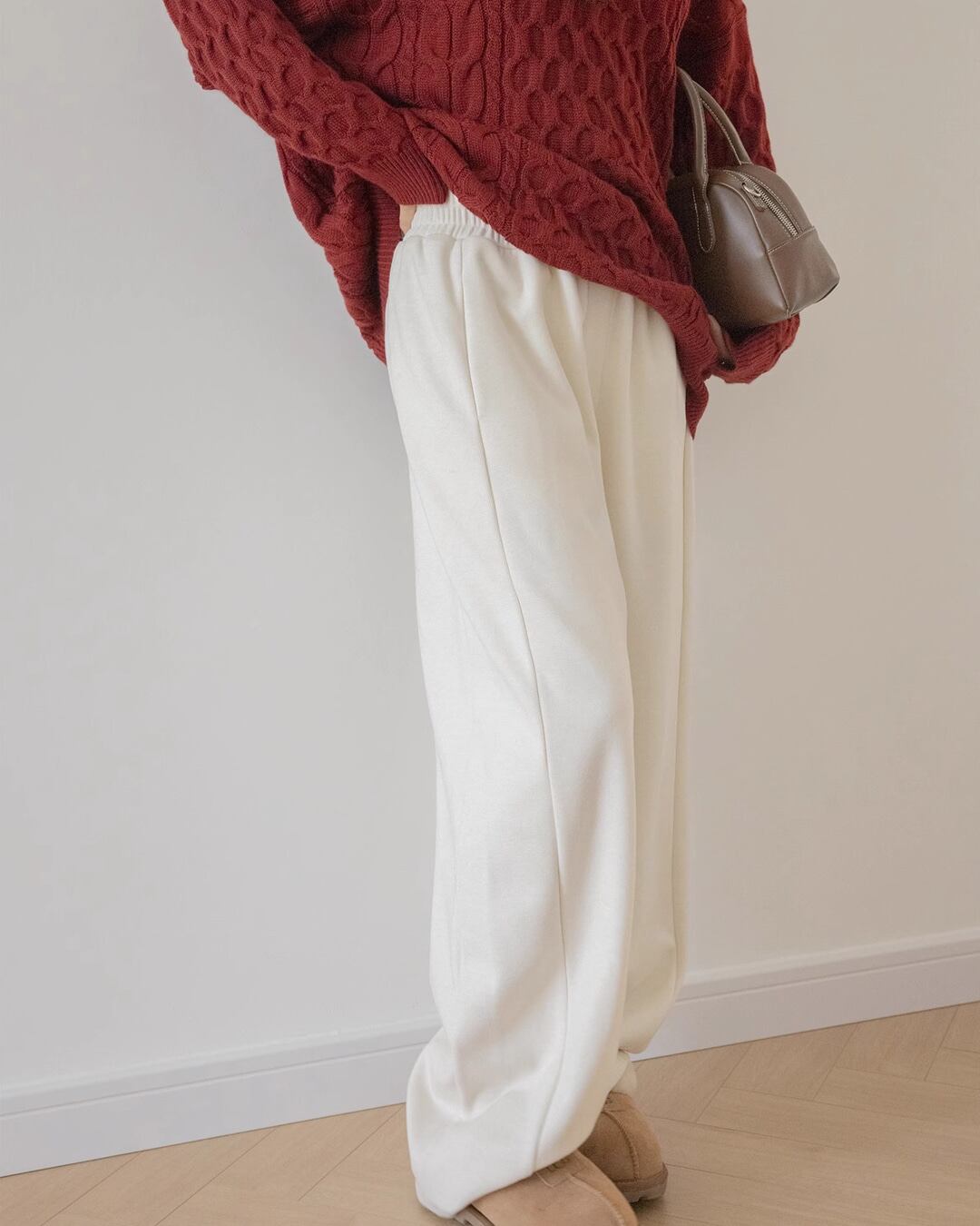 厚みのある生地で暖かく、ウエストゴムで履き心地楽々なスウェットパンツ。