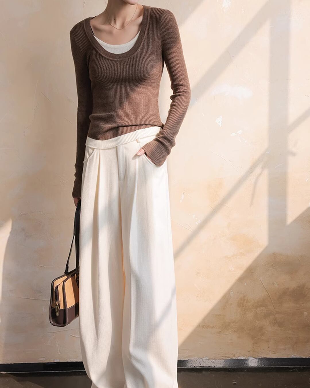 コーディネートが楽で、時間がない日についつい手に取りたくなる重ね着風ニット。
