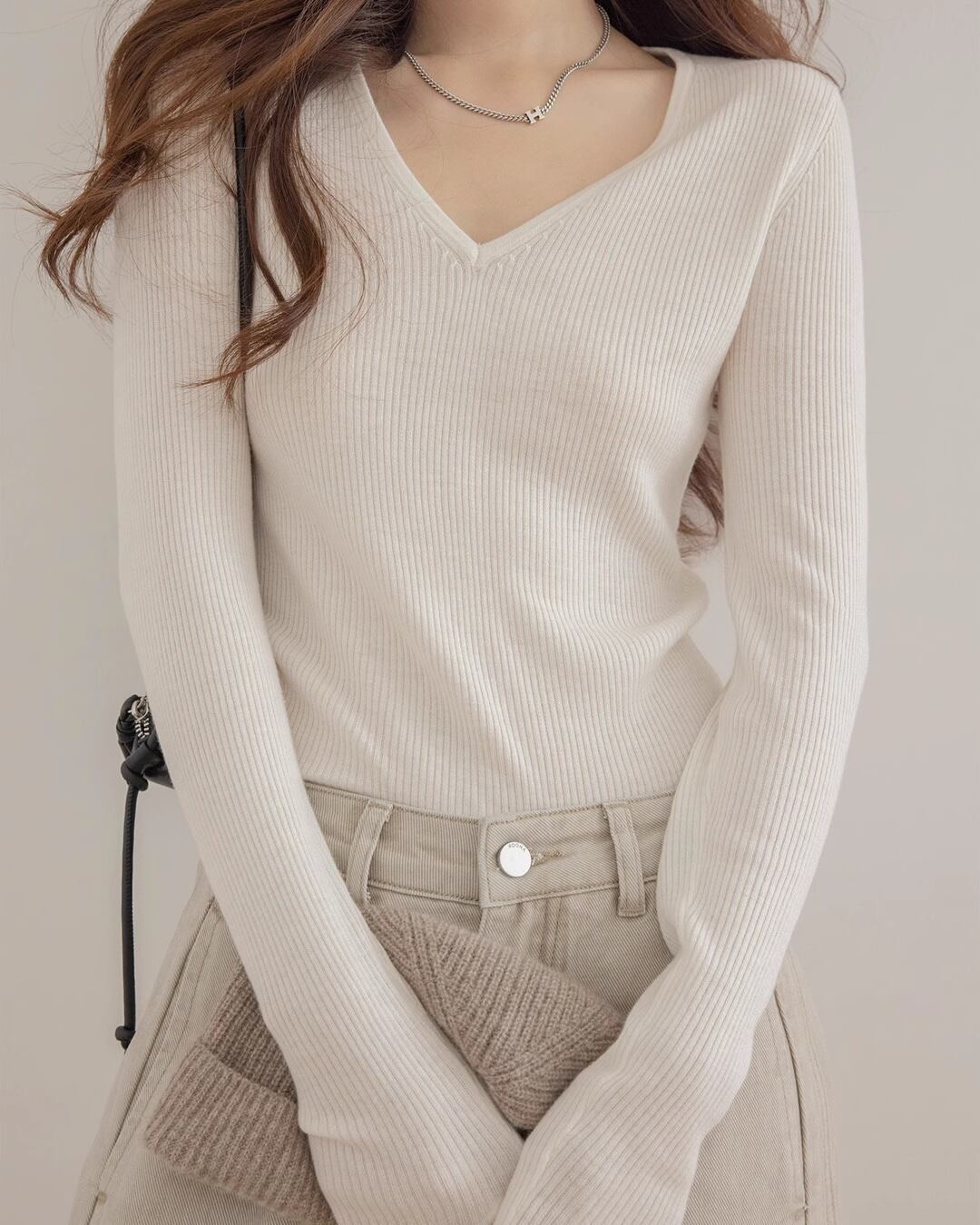 V-neck slim rib Knit T20334