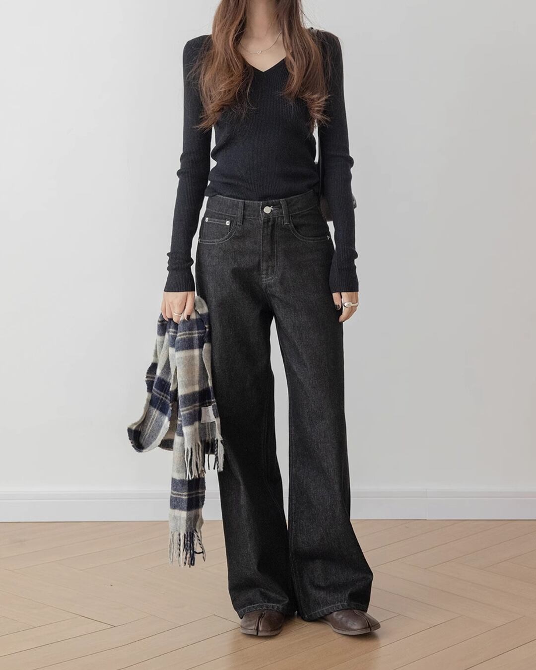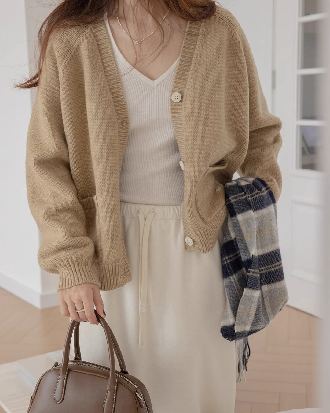 シンプルで合わせやすいベーシックなニット。